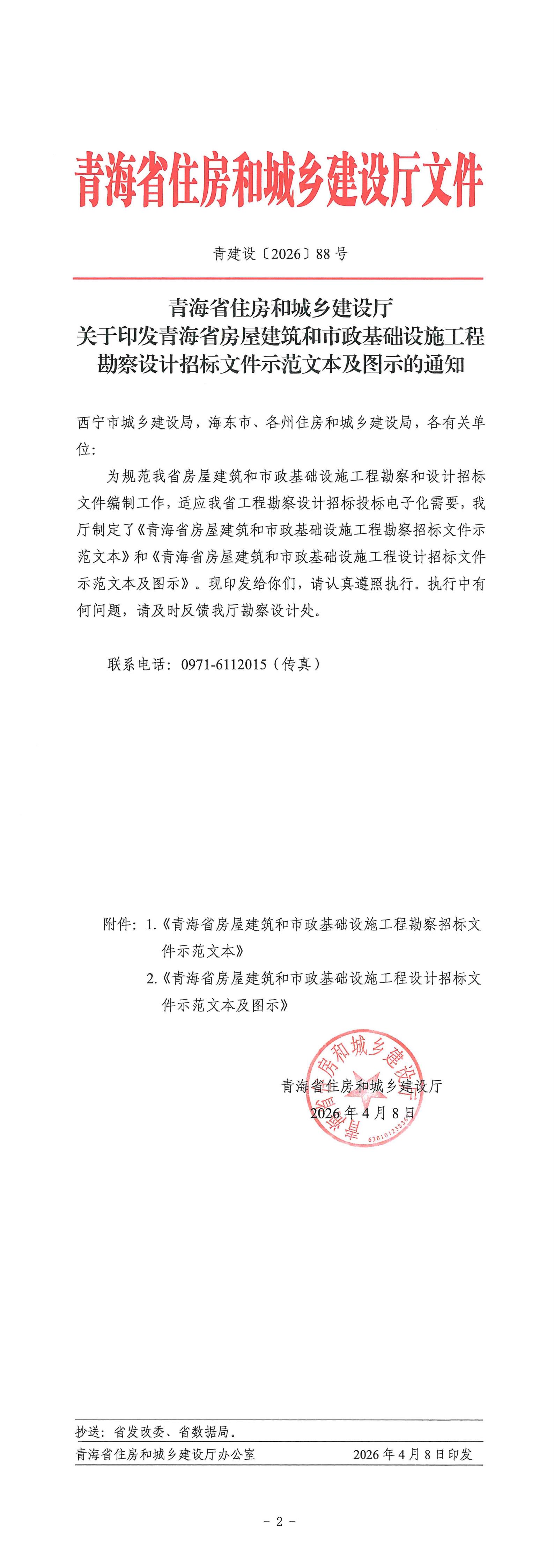 青海省住房和城乡建设厅关于印发青海省房屋建筑和市政基础设施工程勘察设计招标文件示范文本及图示的通知