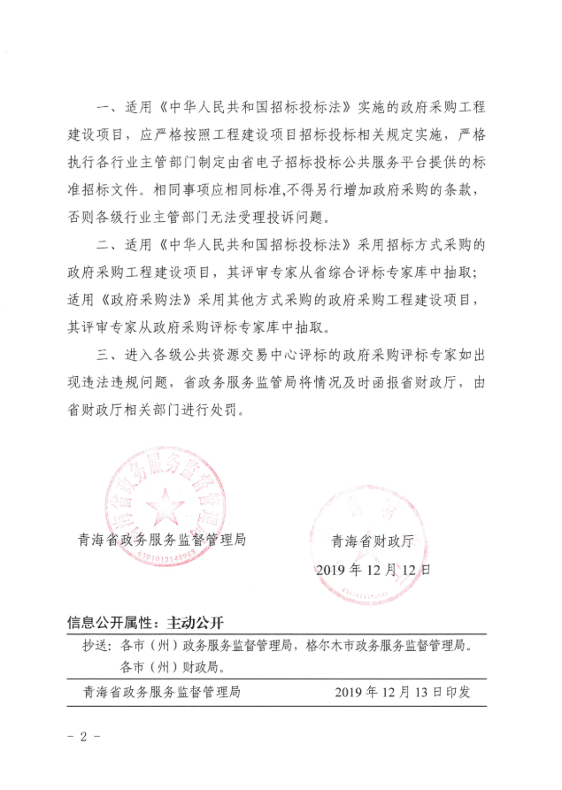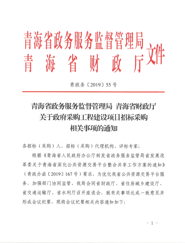 关于政府采购工程建设项目招标采购相关事项的通知 青政务〔2019〕55号